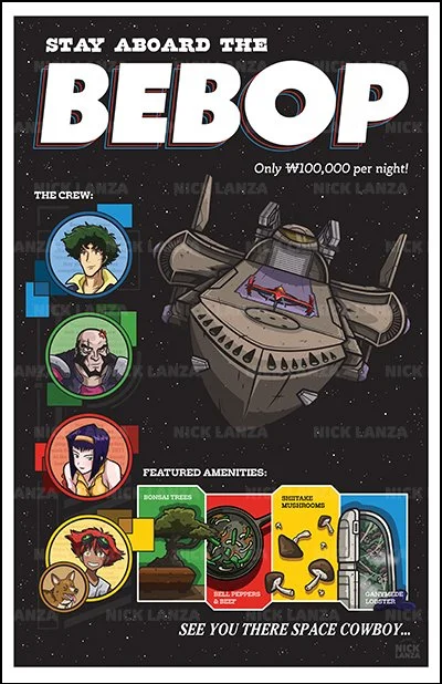 Nick Lanza is an illustrator specializing in pop culture based art prints, primarily from video games, movies, TV shows, and anime. Each print is drawn by hand using Procreate for sketching and Adobe Illustrator for the final artwork. All artwork is family friendly. He has been exhibiting at shows since 2018 and tabled at over 100 events.
